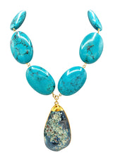 Turquoise Blue Agate in Gold Foil Pendant Necklace